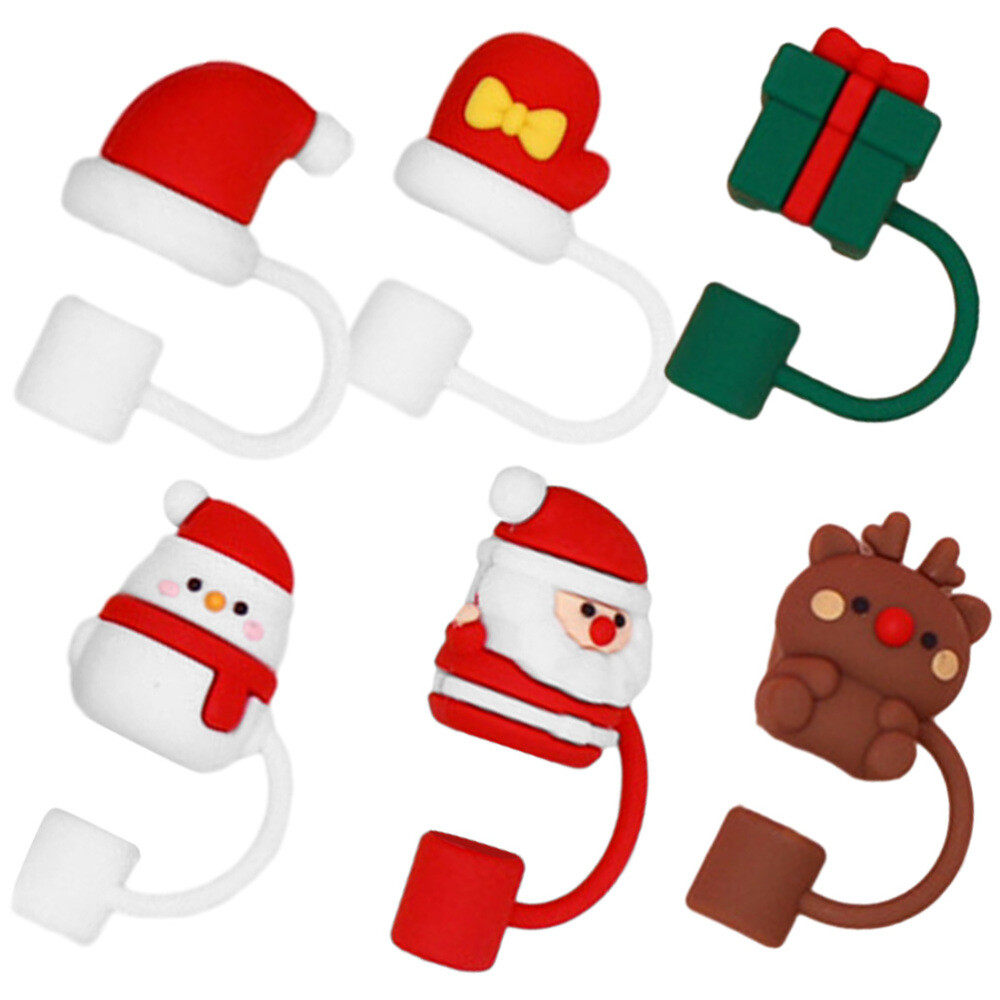 6 Pcs Christmas Straw Hat Man Cartoon Kawaii Cover Covers Cap for Tumblers