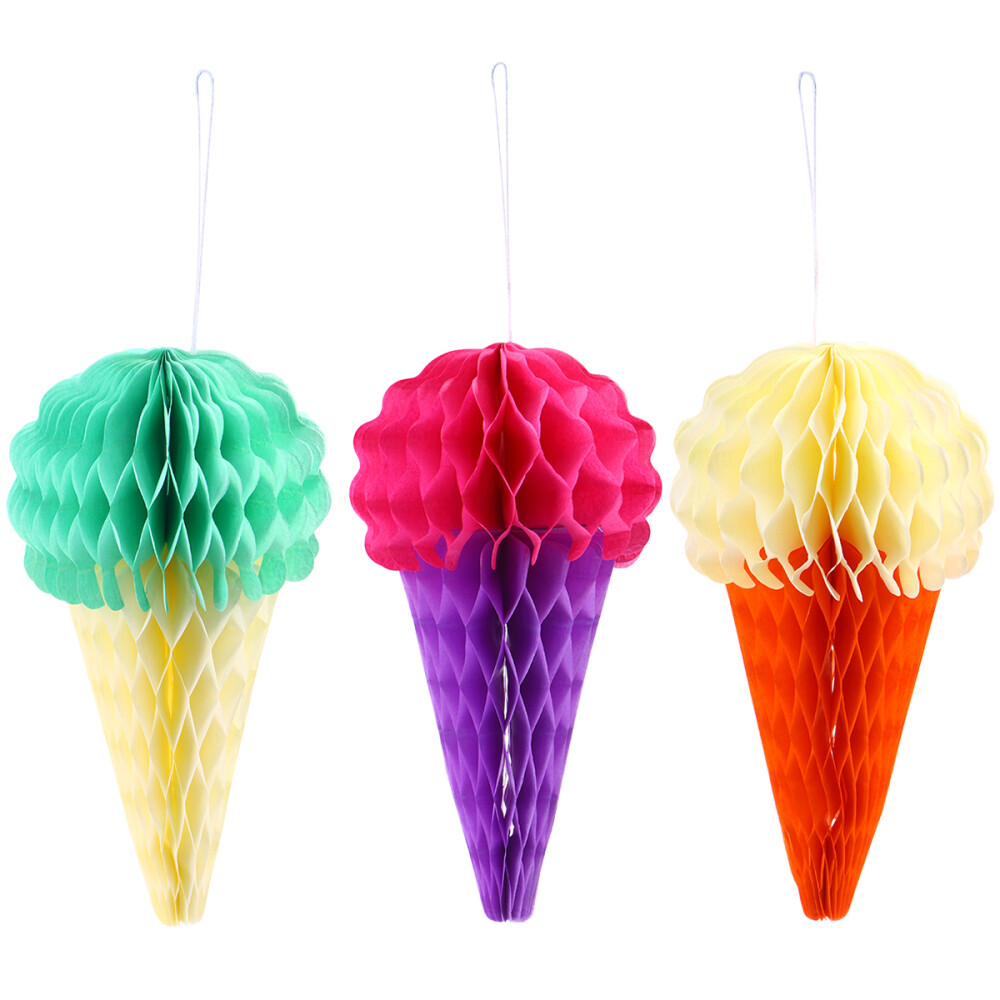3Pcs Hanging Ice Cream Paper Honeycomb Wedding Birthday Party Decoration UK