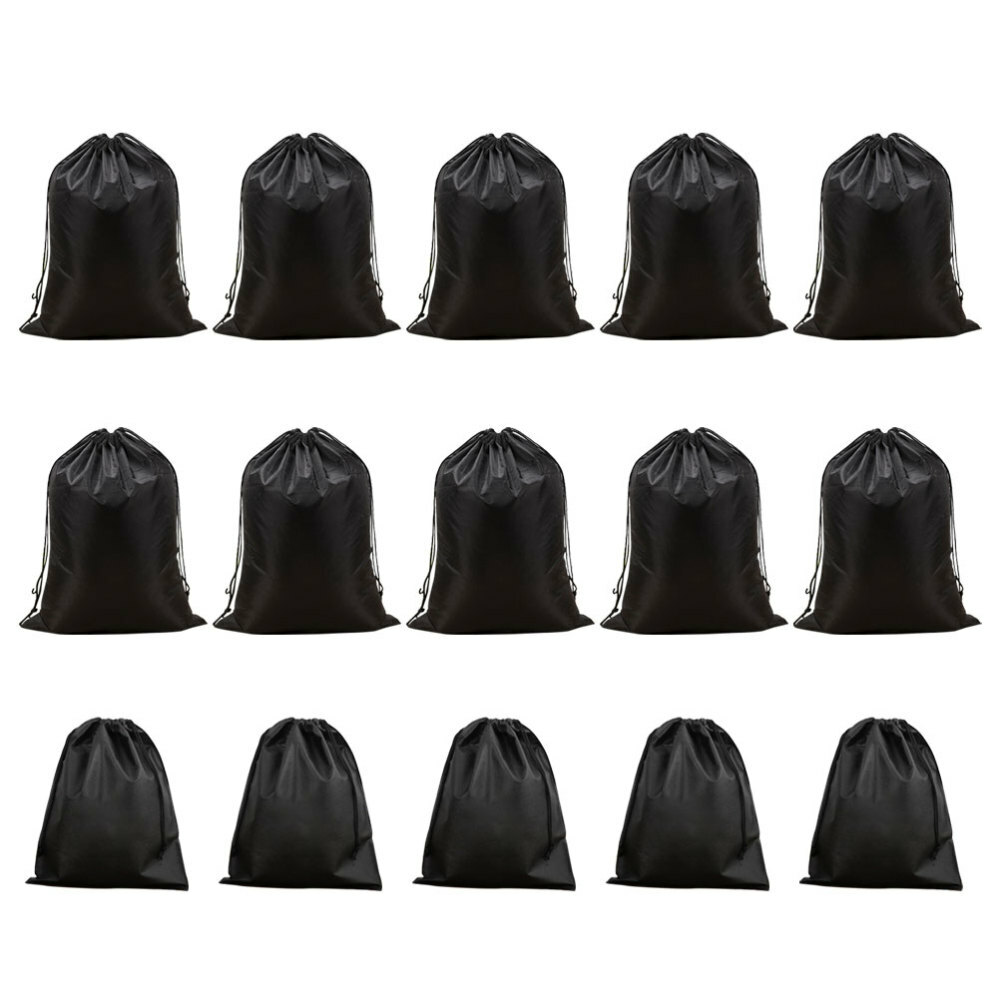 15PCS Black Shoe Bag for Travel Portable Drawstring Pouch Fabric Laundry Tote