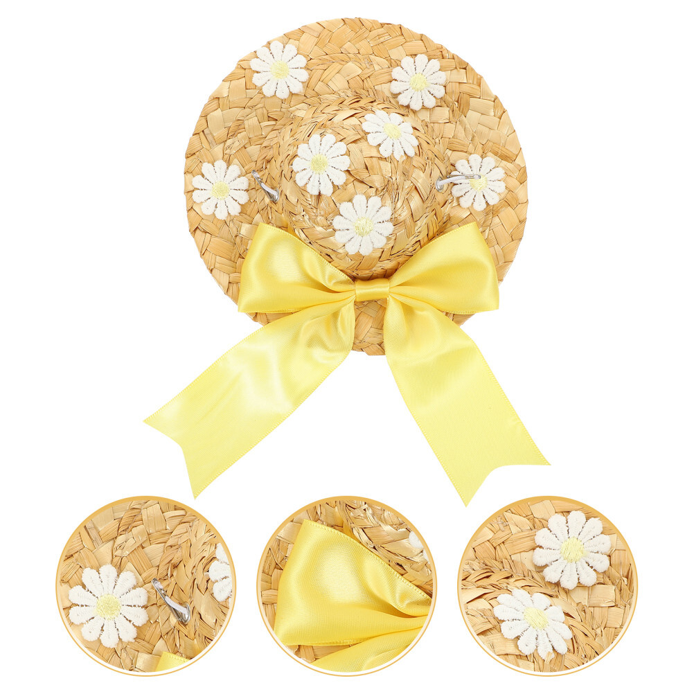 Pet Floral Straw Hat Sombrero Hat Pet Straw Hat Floral Woven Spring Dogs Hat